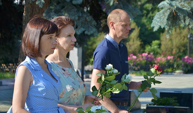 В память о погибших у госадминистрации установлен гранитный камень. Сегодня к нему возложили цветы глава района Руслан Чабан и его заместитель Наталия Кравец, пишет пресс-служба местной госадминистрации. После этого цветы возложили к местам упокоения погибших на Мемориале Воинской Славы.