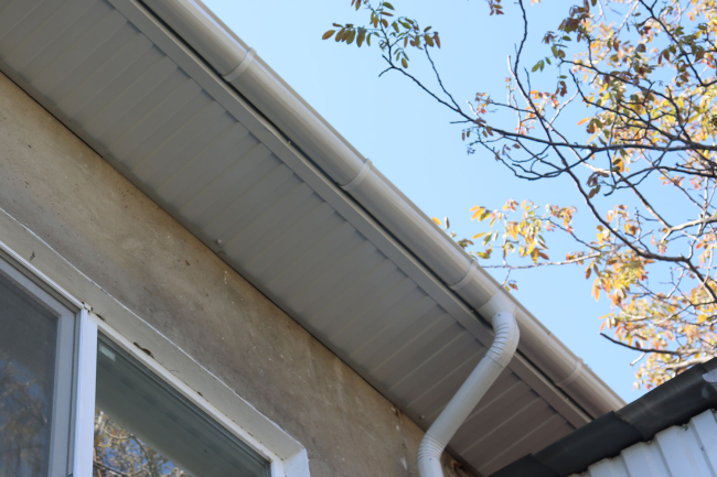 Жильцы дома ремонта крыши ждали давно: во время дождей старая шиферная кровля постоянно протекала. В этом году на двухэтажном доме установили новую шатровую кровлю из профнастила, выполнили также монтаж водосточной системы.