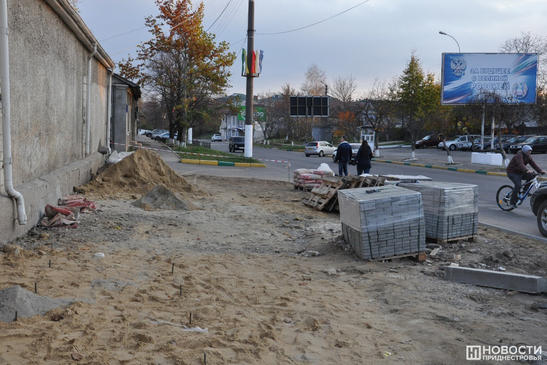 Дубоссары, 15 ноября. /Новости Приднестровья/. В Дубоссарах укладывают тротуарную плитку на пешеходной дорожке от главного входа на городской рынок до МРЭО и на территории детского сада «Радуга». Работы выполняются в рамках реализации муниципальных программ. Там, где обновляют тротуары, будут выполнены съезды и высажены новые зелёные насаждения.