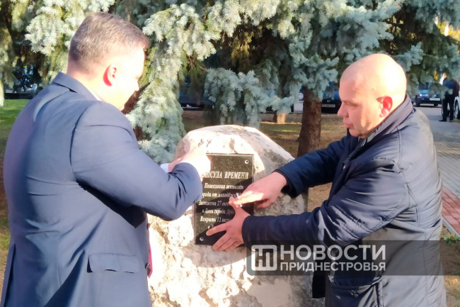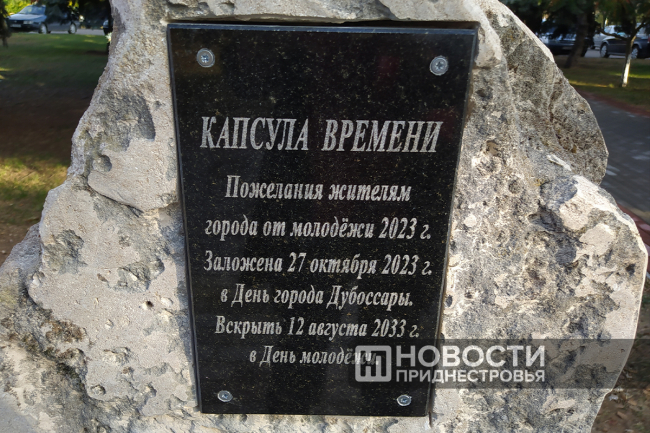 В Капсуле времени – послание молодых дубоссарцев, которое было написано в августе этого года на Фестивале молодёжи. Письмо в будущее будет храниться в специальном камне в сквере у площади Победы, рядом с Доской почёта.