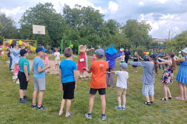 Сегодня на площадке было многолюдно. Вместе с детьми пришли разделить их восторг родители, бабушки и дедушки. Аниматоры управления культуры организовали для малышей конкурсы и игры. Малышей угощали мороженым.