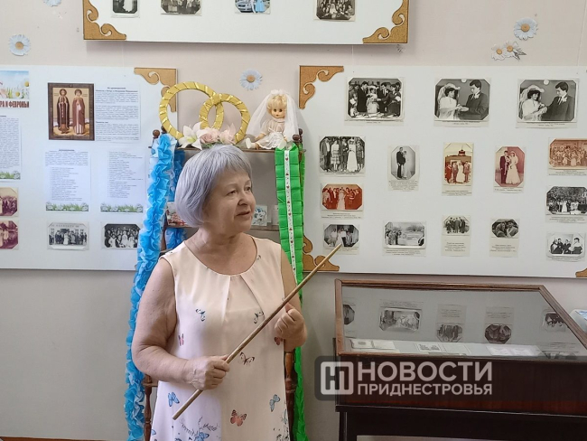 «Этот праздник появился благодаря Муромскому князю Петру и его жене Февронии, - рассказала старший научный сотрудник историко-краеведческого музея Надежда Буймистр. – Пётр был княжеского рода, а Феврония была знахаркой из простого люда. Но это не помешало Петру полюбить Февронию и взять её в законные жёны, как ни противились этому приближённые его двора. Именно за этот подвиг любви  ещё при жизни их почитали как образец супружеской верности и семейного счастья. По легенде, они и умерли как в сказке – оба в один день, 25 июня (по новому стилю – 8 июля) 1228 года. И в 1547 году Церковь узаконила народную традицию почитания Петра и Февронии, введя в православном календаре праздник почитания муромских покровителей семьи именно в день их смерти, 8 июля».На выставке представлены символы православного праздника, а также фотографии из личных архивов дубоссарцев, на которых запечатлены главные моменты семейных торжеств прошлого столетия. Интерес представляют и старинные документы и копии о регистрации, которые раньше проводились в церкви, – записи о рождении, крещении, венчании. Самым старым является свидетельство о крещении младенца Ивана, совершенном в дубоссарской церкви Всех Святых 1 июля 1872 года священником Павлом Шатуновым.