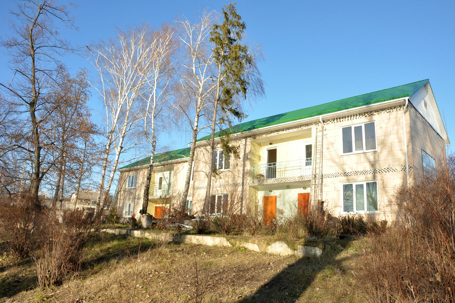 Шатровую кровлю из профнастила установили на двух блоках, выполнен также монтаж водосточной системы. В 2020 году здесь заменили оконные и дверные блоки, в 2021 году - систему отопления, установили два новых котла.