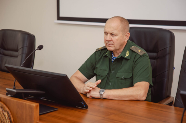 Заместитель министра обороны подполковник Сергей Поляков зачитал поздравления Главнокомандующего Вооружёнными силами и министра обороны с Днём создания Вооружённых сил.