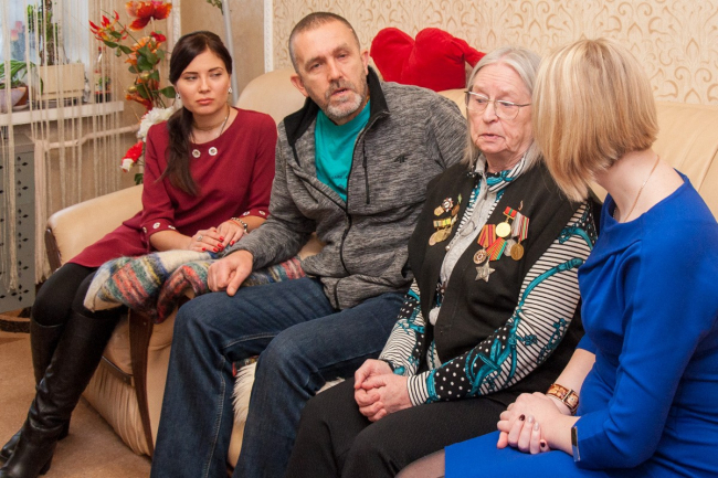 Первой традиционно заезжают к председателю столичного общества блокадников — Маргарите Алексеевне Ивановой. Она в осадном Ленинграде оказалась совсем маленькой вместе с большой семьёй. Выжить помог военный паёк отца-зенитчика.