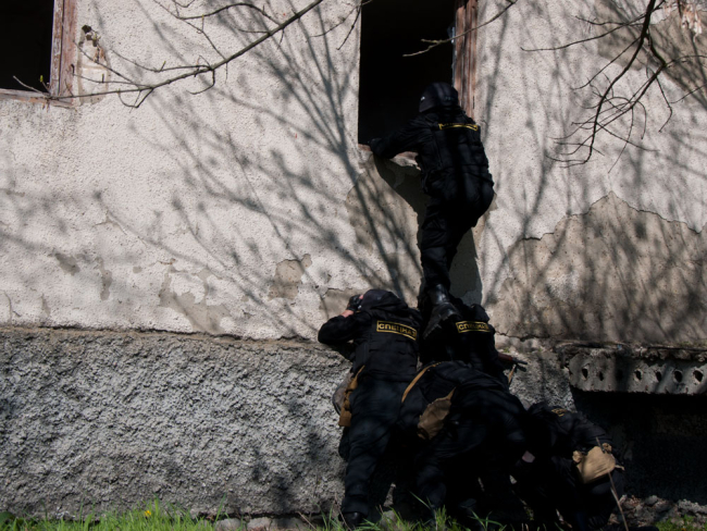 Наблюдавшая за ходом учений министр юстиции Ольга Зварыч дала высокую оценку слаженности действий бойцов сводного отряда.
