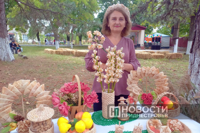 Руководитель коллектива декоративно-прикладного творчества «Моара де хыртие» Дома культуры села Спея Анна Паскарь привезла на фестиваль выставку работ из листьев кукурузы. Анна ведёт кружок уже 10 лет и за это время обучила мастерству плетения многих сельчан. Говорит, что о таком виде рукоделия узнала от бабушки, в интернете познакомилась с техниками создания поделок и игрушек из листьев кукурузы. Сегодня на выставке были представлены эксклюзивные работы: корзинки, цветы, вазы, шляпы, сувениры.