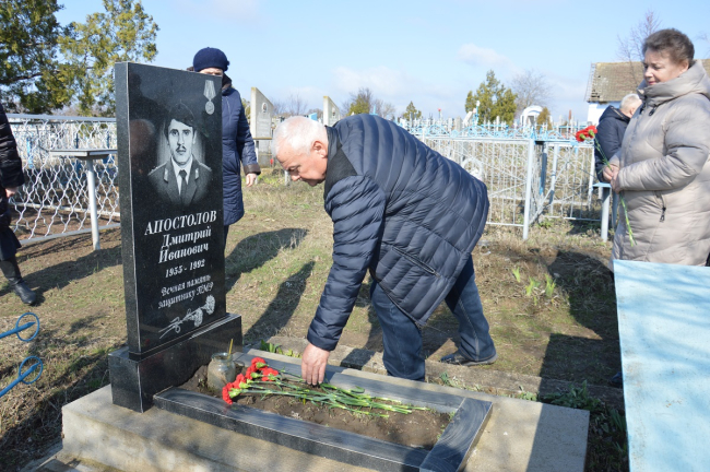 Как сообщила пресс-служба районной госадминистрации, памятная церемония в годовщину гибели героя прошла на кладбище в селе Тея Григориопольского района. В ней приняли участие заместитель главы государственной администрации Григориопольского района и города Григориополя Валентина Ильенкова, глава администрации села Тея Роман Дубица, председатель Союза защитников Приднестровья Григориопольского района «Центр» Сергей Кутовой, председатель Григориопольского Союза женщин Любовь Косарева, жители села.