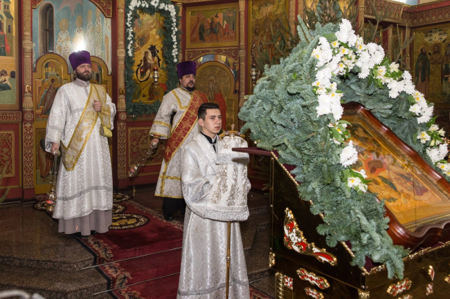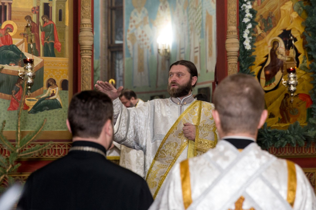 Рождественская служба традиционно длится три часа и состоит из трёх частей: «Великого Повечерия», «Утрени» и «Первого Часа».