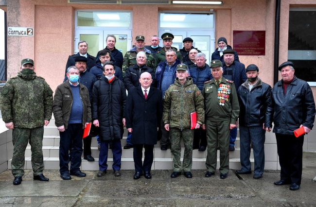 За многолетний добросовестный труд, активное участие в становлении и защите Приднестровья и в связи с годовщиной со дня образования Народного ополчения грамотами главы госадминистрации награждены 35 ополченцев Каменского района.