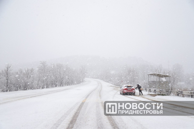 В Каменском и Рыбницком районах выпал снег. Водителей призывают быть внимательнее на дорогах