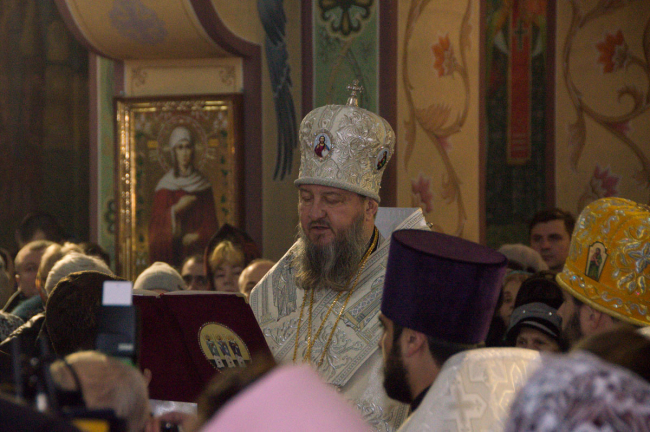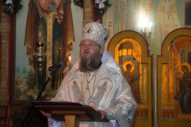 После праздничной литургии Владыка Савва выступил с напутствием к верующим, а также зачитал послание патриарха Московского и всея Руси Кирилла.