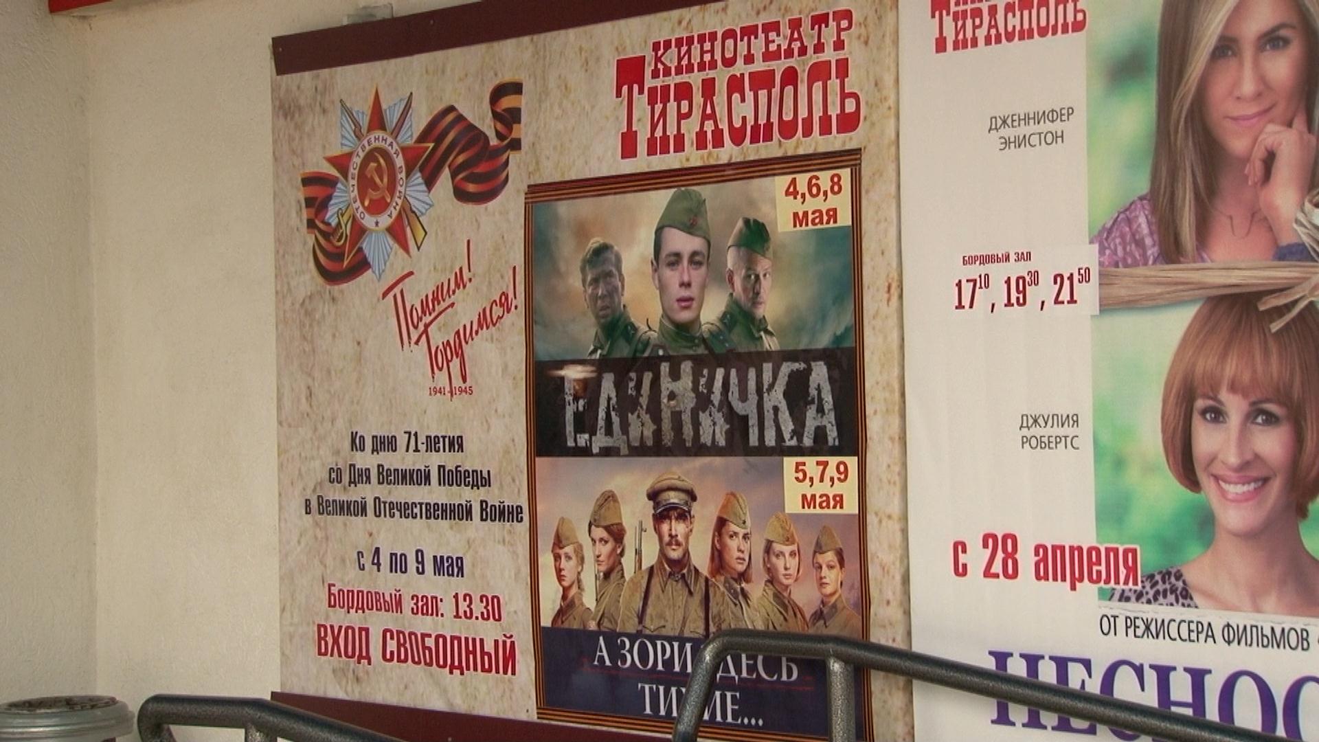 «В этом году мы решили показывать фильмы через день, то есть один день — «Единичка», следующий день — «А зори здесь тихие». Это новые фильмы о войне. Мы решили показывать ни один фильм, а два, чтобы было интересно нашему зрителю. Показ проходит в бордовом зале, начало в 13:30», — рассказала сотрудник кинотеатра «Тирасполь» Ольга Рябчук.