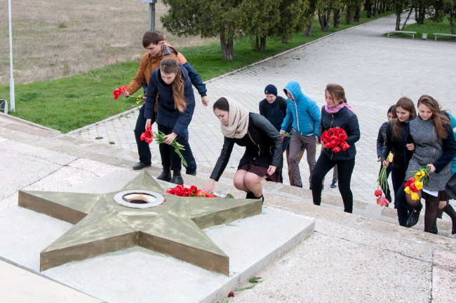 В Международный день памятников и исторических мест школьники возложили цветы к обелиску Славы, установленному на Кицканском плацдарме