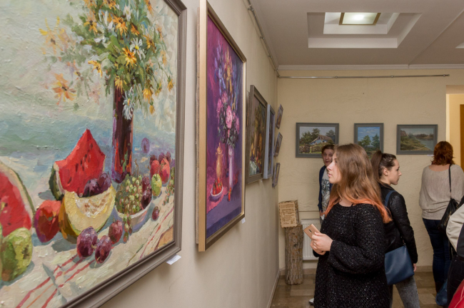 На экспозиции представлены произведения в жанре реализм и абстракционизм