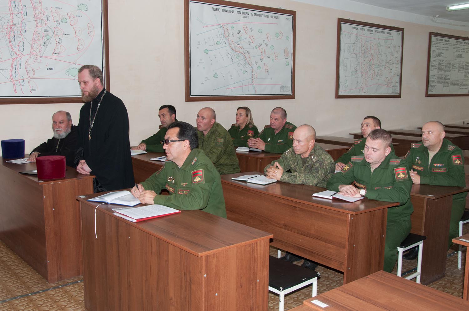 Тирасполь, 25 октября. /Новости Приднестровья/. Министр обороны генерал-майор Олег Обручков провел рабочую встречу с командирами воинских частей, их заместителями по воспитательной работе и войсковыми священниками. Обсуждались вопросы, связанные с реализацией пунктов Соглашения о сотрудничестве между Министерством обороны и Тираспольско-Дубоссарской епархией, которое было подписано на прошлой неделе в здании Епархиального управления.