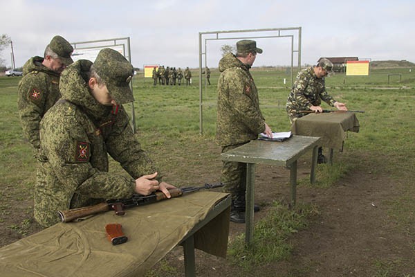 На одном из учебных мест было проверено знание материальной части оружия и контрольное занятие по неполной разборке и сборке автомата Калашникова после неполной разборки. Кроме этого, военнослужащие практиковались в изготовке к стрельбе из положения лежа. Отсчет времени начинается от команды «К бою» до доклада «К бою готов». На оценку «отлично» необходимо выполнить упражнение за 7 секунд, 8 секунд — «хорошо», 10 — «удовлетворительно».