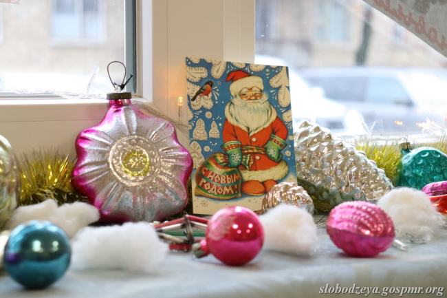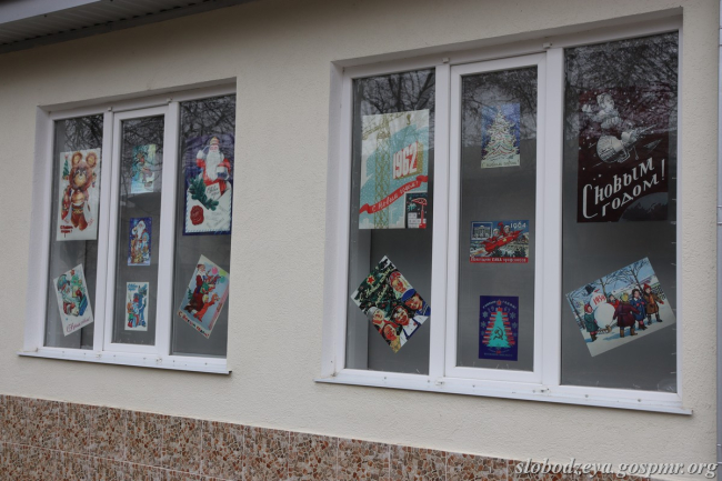 В окнах здания Слободзейского исторического музея разместилась выставка «Калейдоскоп старинных новогодних открыток», на которой представлены плакаты с новогодними открытками. Самые ранние датированы началом ХХ века. Они позволяют увидеть, как на протяжении почти 100 лет менялась эпоха. А в лекционном зале для посетителей экспонируется «Ретро-ёлка», наряженная в новогодние советские игрушки периода 1950-1980-х гг.