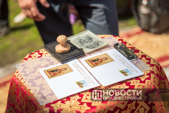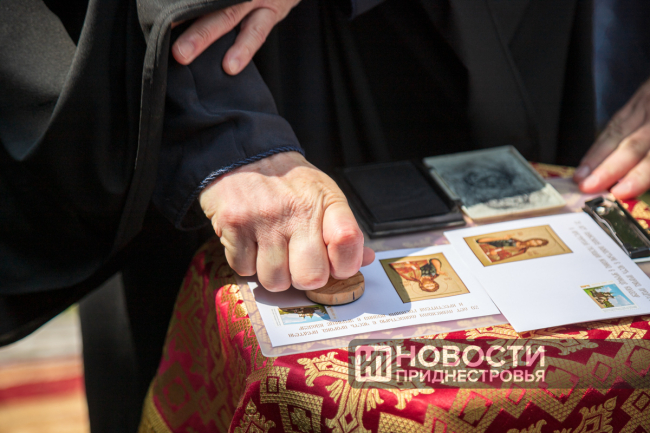 После богослужения прошло памятное спецгашение. В честь праздника ГУП «Марка Приднестровья» представило конверт и марку.