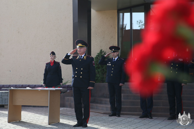 К памятнику милиционерам, погибшим при исполнении служебных обязанностей, присутствовавшие возложили цветы.