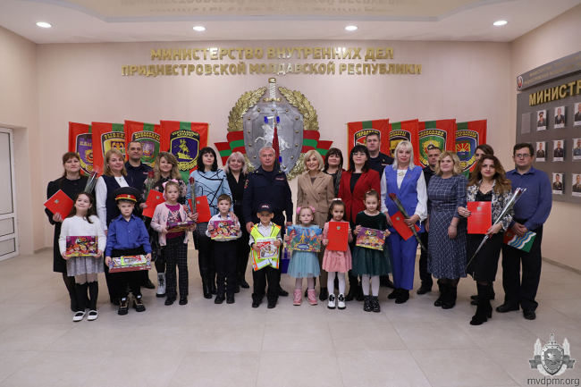 Тирасполь, 29 ноября. /Новости Приднестровья/. В Министерстве внутренних дел ПМР наградили воспитанников и педагогов дошкольных учреждений столицы, занявших призовые места в муниципальном конкурсе «Дети – дорога – безопасность!». Его организаторами выступили столичное Управление народного образования совместно с УГАИ МВД ПМР в рамках мероприятий по пропаганде безопасного поведения на дороге и соблюдения Правил дорожного движения.