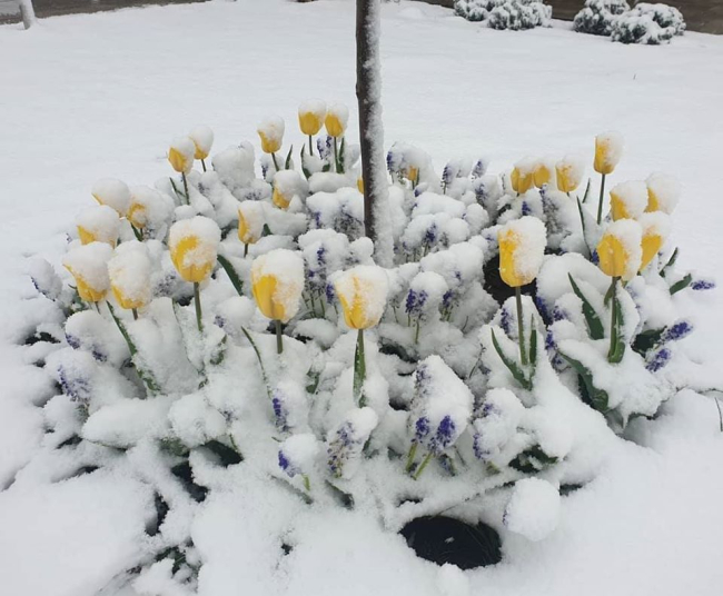 Европейцы делятся кадрами заснеженных улиц в соцсетях. В Вильнюсе, где после вчерашних +22°С сегодня температура упала до -1°С, снег припорошил цветочные клумбы, а в окрестностях, на дачных и садовых участках прикрыл грядки снежным покрывалом до 2 см.