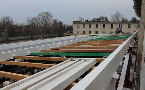 Рыбница, 14 марта. /Новости Приднестровья/. В здании средней школы в Рыбнице, строящемся в рамках российской социально-гуманитарной программы по линии АНО «Евразийская интеграция», завершены работы по монтажу крупных металлоконструкций: 22-метровых ферм, поперечных балок и прогонов, являющихся основой для крыши над спортивным и актовым залами. Рабочие приступили к нанесению огнезащитного покрытия, установке материалов утеплителя, паро- и гидроизоляции, а также внешней и внутренней облицовки.