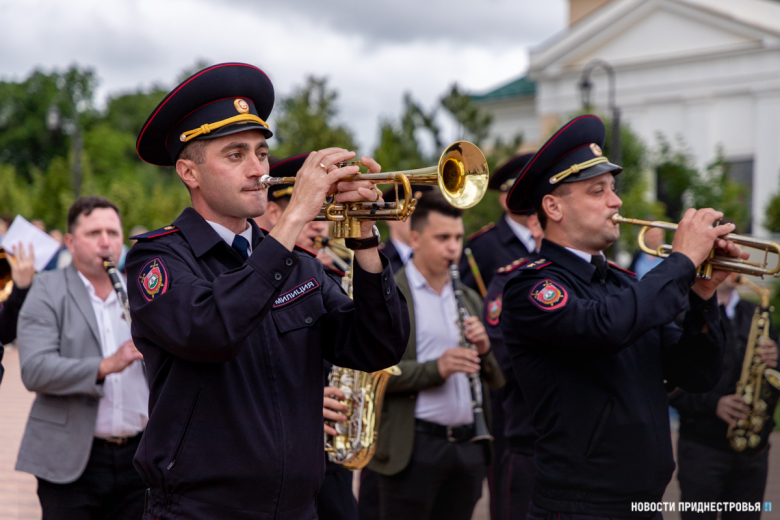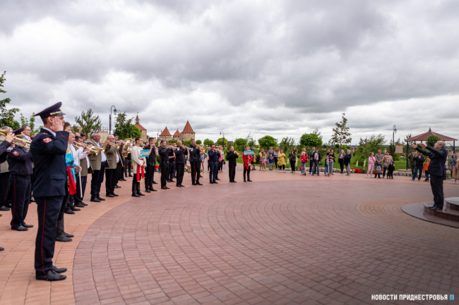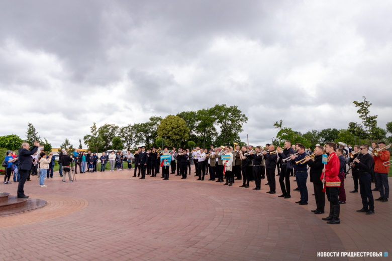 На центральной аллее парка музыканты исполнили гимны Приднестровья и России, а также приветственный марш «Парад» Чернецкого.