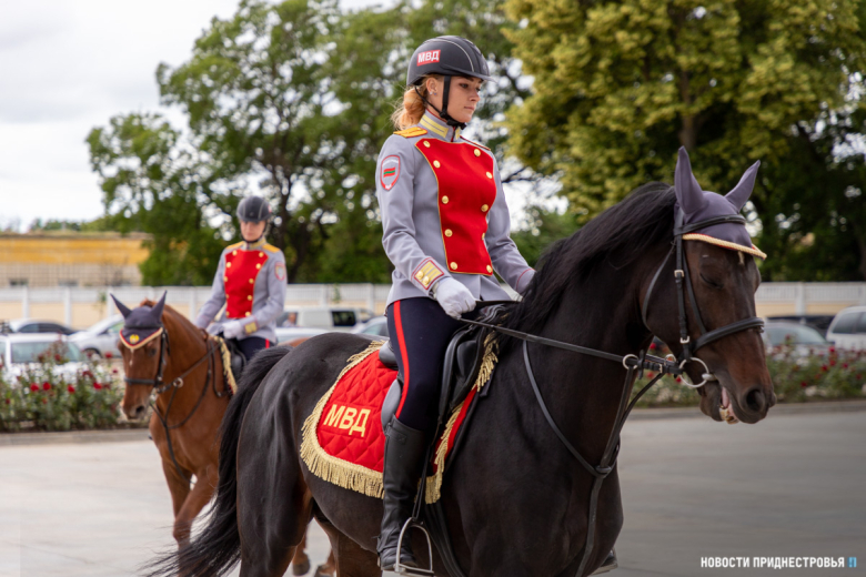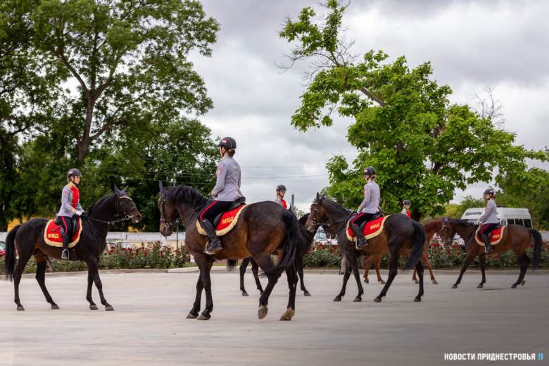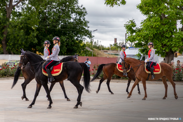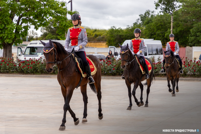 На плацу всех гостей праздника ожидали показательные выступления конно-спортивного клуба «Динамо-Триумф» МВД ПМР. Шесть пар – лошади и всадницы – под музыку исполнили танец. Зрители с восторгом встретили это выступление.