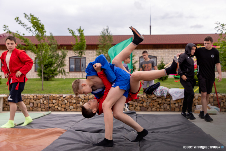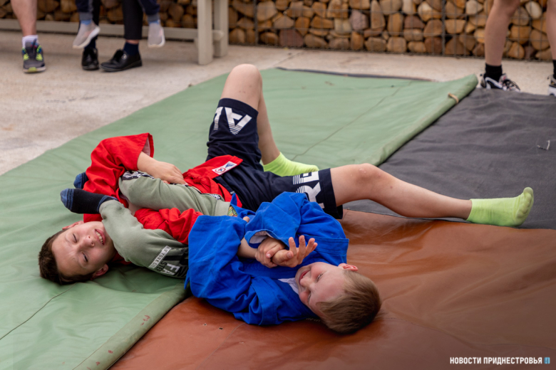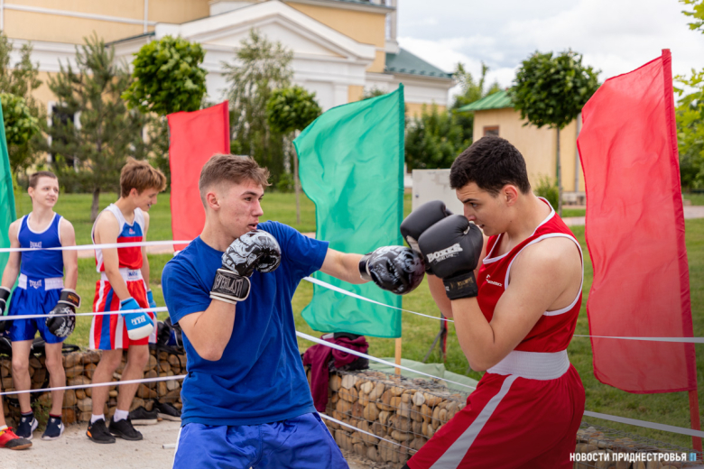 В парке Александра Невского также организовали показательные выступления бендерских спортивных школ борьбы и бокса. Воспитанники продемонстрировали своё мастерство. Рядом для юных приднестровцев подготовили развлекательную площадку. Пройти по полосе препятствий мог любой желающий.