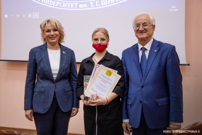 13 Окт., 2021, 17:43Тирасполь, 13 октября. /Новости Приднестровья/. В преддверии Дня города Тирасполя в Приднестровском государственном университете состоялось награждение победителей и призёров международной конференции «Покровские чтения», а также волонтёров и активных студентов. Им вручили благодарственные письма от городского Совета народных депутатов и грамоты под подписью Архиепископа Тираспольского и Дубоссарского Саввы.