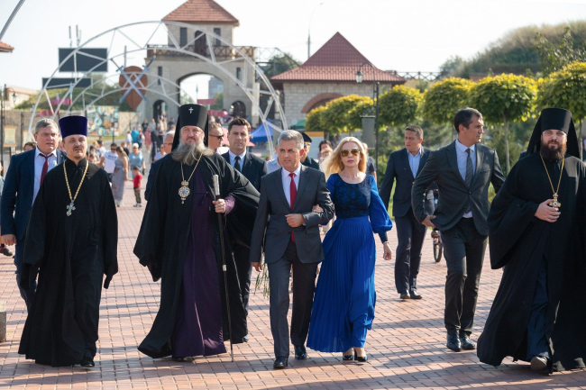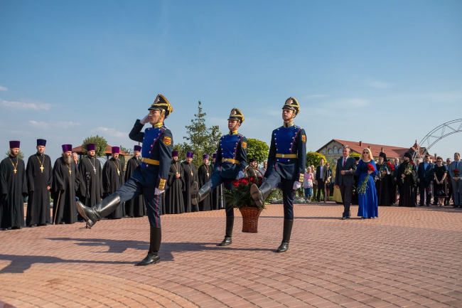 После участники официальной части торжеств прошли к храму, возведенному в честь Александра Невского.