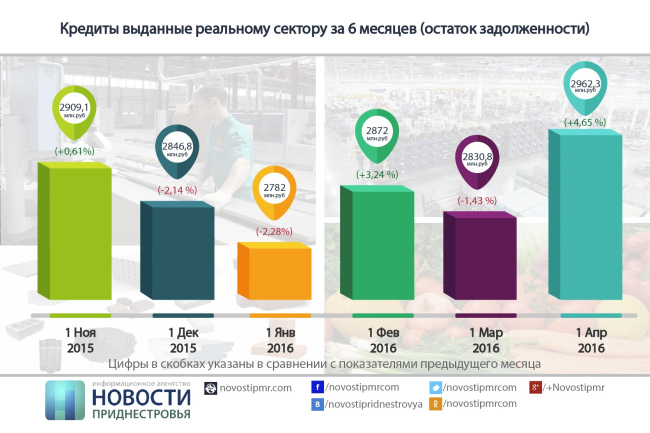 18 Апр., 2016, 17:21Тирасполь, 18 апреля. /ИА «Новости Приднестровья"/. В первые два месяца 2016 года по сравнению с таким же периодом прошлого года ставки по краткосрочным рублевым кредитам для предприятий реального сектора снизились на 2% - до 12,7%. В то же время по долгосрочным кредитам в рублях ставки здесь выросли с 9% до 12,4%.