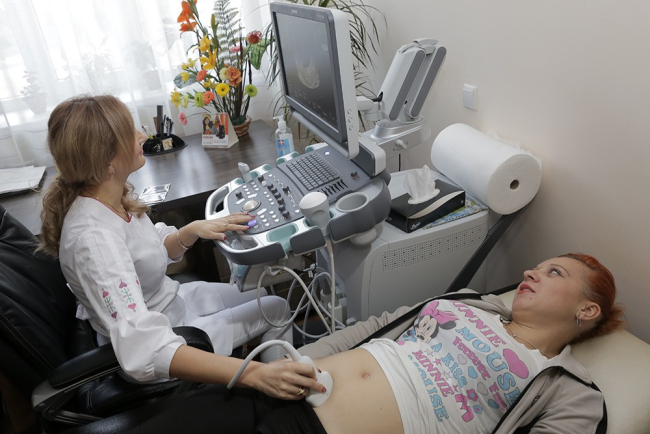 С таким же сканером, но с другими насадками вот уже неделю работают в гинекологическом стационаре ЦМиР. Его возможности лучше всего продемонстрировала диагностика одной из пациенток: на 11-й неделе беременности уже видны не только общие контуры будущего малыша, но голова, руки, ноги и то, как бьётся его сердце. Будущей маме даже дали послушать его стук, а затем подарили фотографию на память.
