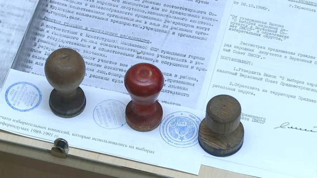 О том, как это было, рассказывают экспонаты музея. Старые чёрно-белые фотографии кандидатов в первый орган власти молодой республики – Временный Верховный Совет, удостоверения членов ЦИКа, целый ряд бюллетеней, газетные вырезки, печати, бланки, подписные листы, изображения политических движений и организаций (некоторых из которых уже и нет), приднестровская Конституция, вывеска с избирательного участка, агитматериалы разных лет, протоколы о результатах референдумов, тематическая литература. Всё это, как кадры киноленты, фрагментарно высвечивает самые интересные моменты истории не только Центризбиркома, но и самого приднестровского государства.