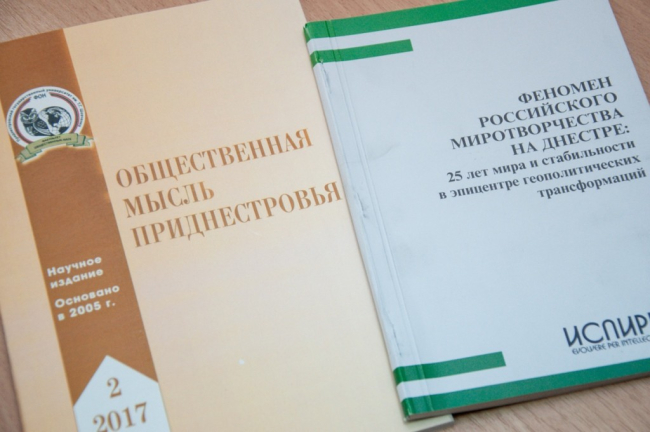 «Сборники «Общественная мысль Приднестровья» и «Феномен российского миротворчества на Днестре: 25 лет мира и стабильности в эпицентре геополитических трансформаций» выпущены под эгидой Приднестровского госуниверситета», - отметила она, пояснив, что в начале лета прошли две большие конференции и эти издания явились итогом данных дискуссий.