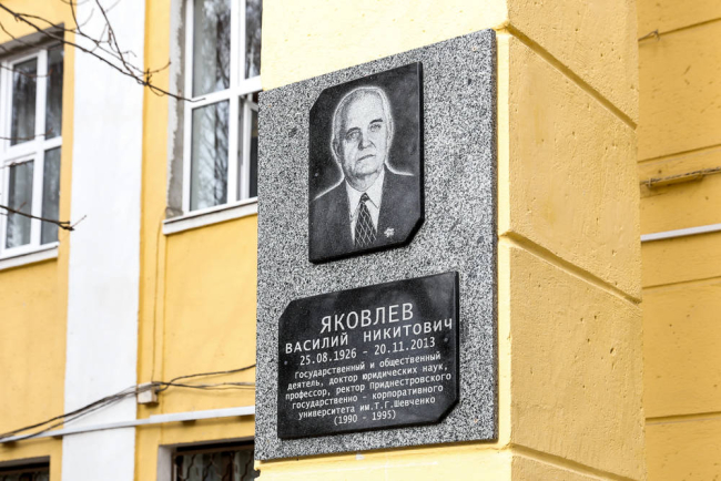 Василий Никитович Яковлев — педагог с более чем 50-летним стажем, автор более 350 научных работ, в том числе более 20 монографий. Его труды издавались не только на русском и молдавском, но и на зарубежных языках. Он является Заслуженным деятелем науки РФ, будучи заслуженным юристом, он стал автором первой Конституции ПМР, довелось побывать и депутатом первого созыва Верховного Совета Приднестровья.
