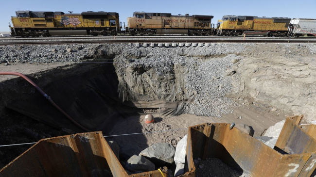 Из-за образовавшегося гейзера с горячей водой под угрозой оказалась железная дорога