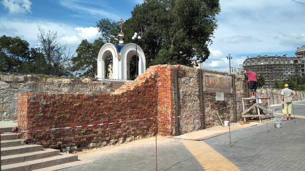 Тирасполь, 27 июня. /Новости Приднестровья/. В Тирасполе на площади им. А.В. Суворова продолжается реконструкция трибуны и стены, некогда служившей ограждением возвышения, на котором стояла Покровская церковь.