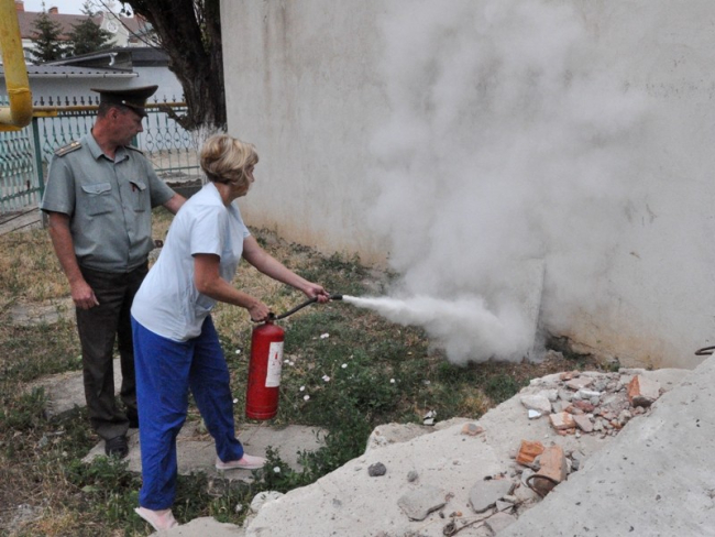 После тактико-специальных учений каждый сотрудник на практике изучил принципы работы огнетушителей разных видов и лично ликвидировал искусственный очаг возгорания.