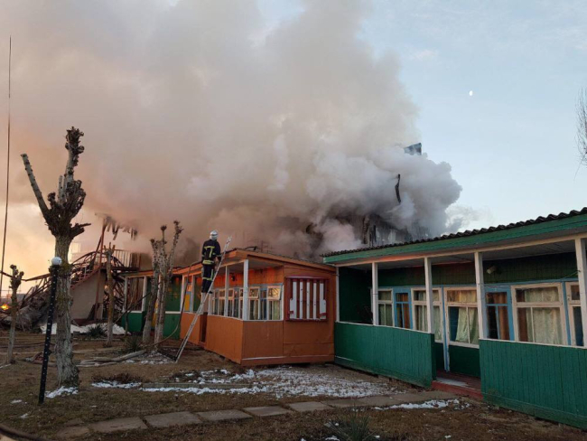 Вызов поступил в службу спасения «101» в 04:20 25 февраля, уточняет портал «Думская». Прибывшие на место пожарные установили, что открытым пламенем горят здания баз отдыха «Черемшина» и «Надзбруччя». Потушить пожар на 800 кв. м удалось только после 8 часов.