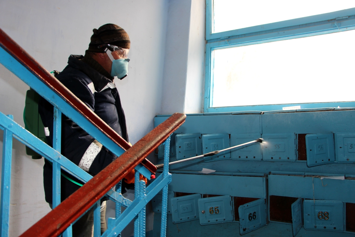 Во время карантина действует усиленный дезинфекционный режим, поэтому жилые многоквартирные дома будут обрабатывать ежедневно. Всего на балансе ЖЭУК 322 дома.