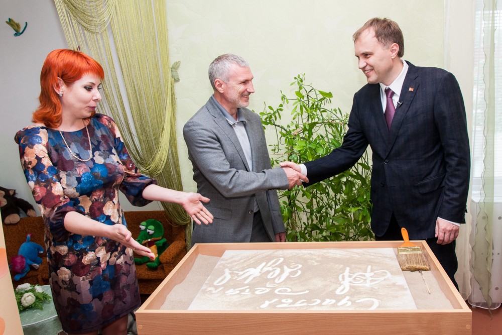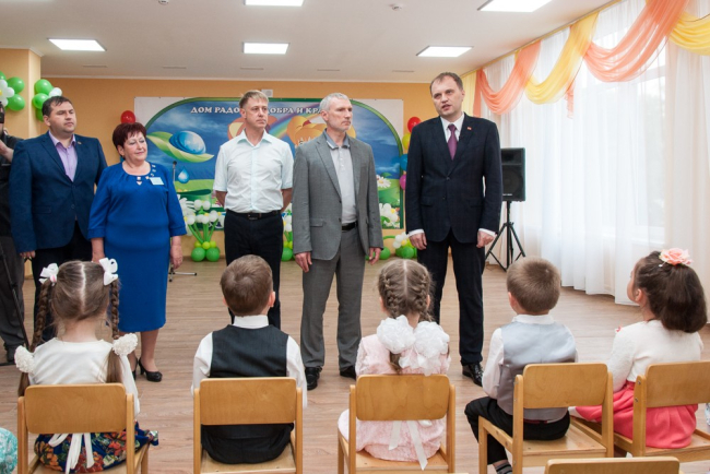 Церемонию открытия детсада посетили также Президент ПМР Евгений Шевчук, учредитель АНО «Евразийская интеграция», депутат Госдумы РФ Алексей Журавлёв и директор автономной некоммерческой организации Александр Аргунов.