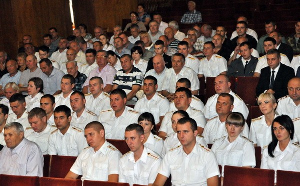Обращаясь к сотрудникам отдела внутренних дел, заместитель главы Юрий Молдовский прочёл приветственный адрес руководителя государственной администрации Вячеслава Фролова.