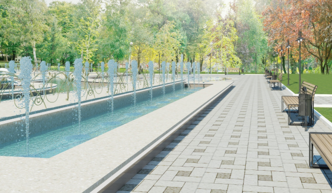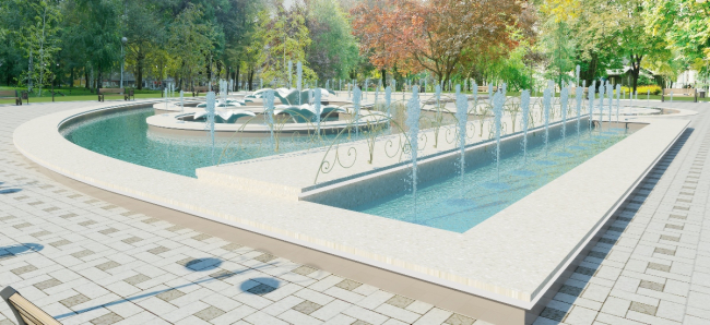 «Это будет стилизация: пруд с цветами в виде лилий и расходящимися кругами на водной глади. В центральную композицию фонтана также входят два пешеходных мостика, будет подсветка всех декоративных элементов и струй. Мы ещё думаем благоустроить площадку вокруг фонтана: поменять плитку, сделать новое замощение, установить новые скамейки и фонари. Фонтан преобразится полностью, от старого останется только форма чаши», – рассказала она.