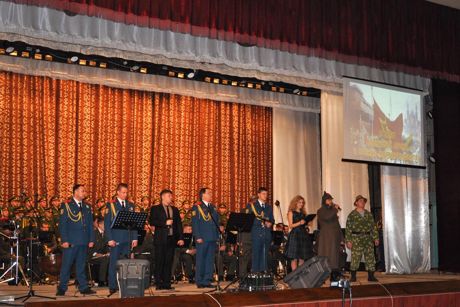 Музыкальные композиции «Красная Армия всех сильней», «Там вдали за рекой», «Священная война», «Афганская дорога» в исполнении солистов оркестра были посвящены Гражданской, Великой Отечественной, Чеченской и Афганской войнам, а также памятным датам и значимым сражениям.