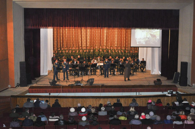 Рыбница, 19 февраля. /Новости Приднестровья/. Оркестр Главного штаба Вооружённых сил совместно с хором Оперативной группы российских войск в Приднестровье представили в воскресенье во Дворце культуры Рыбницы праздничную программу. Её посвятили 100-летию создания Рабоче-крестьянской Красной армии и предстоящему Дню защитника Отечества, сообщает пресс-служба Минобороны ПМР.