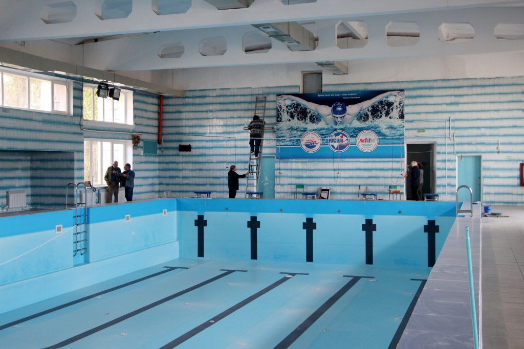 В городском бассейне недавно завершили капремонт раздевалок и душевых, заменили водопровод, канализацию, отопительную систему, дверные и оконные блоки. На завершающей стадии – устройство вентиляции и освещения в бассейне.