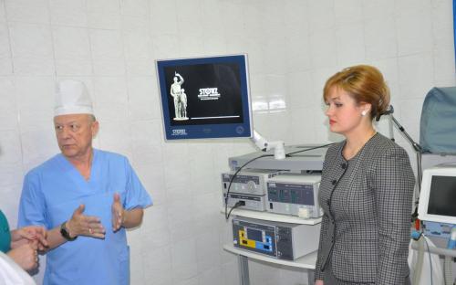 Сегодня министр здравоохранения Татьяна Скрыпник посетила хирургическое отделение рыбницкой Центральной районной больницы, в котором установили современную эндовидеохирургическую стойку для проведения малоинвазивных оперативных вмешательств в абдоминальной хирургии фирмы «KARL STORZ».