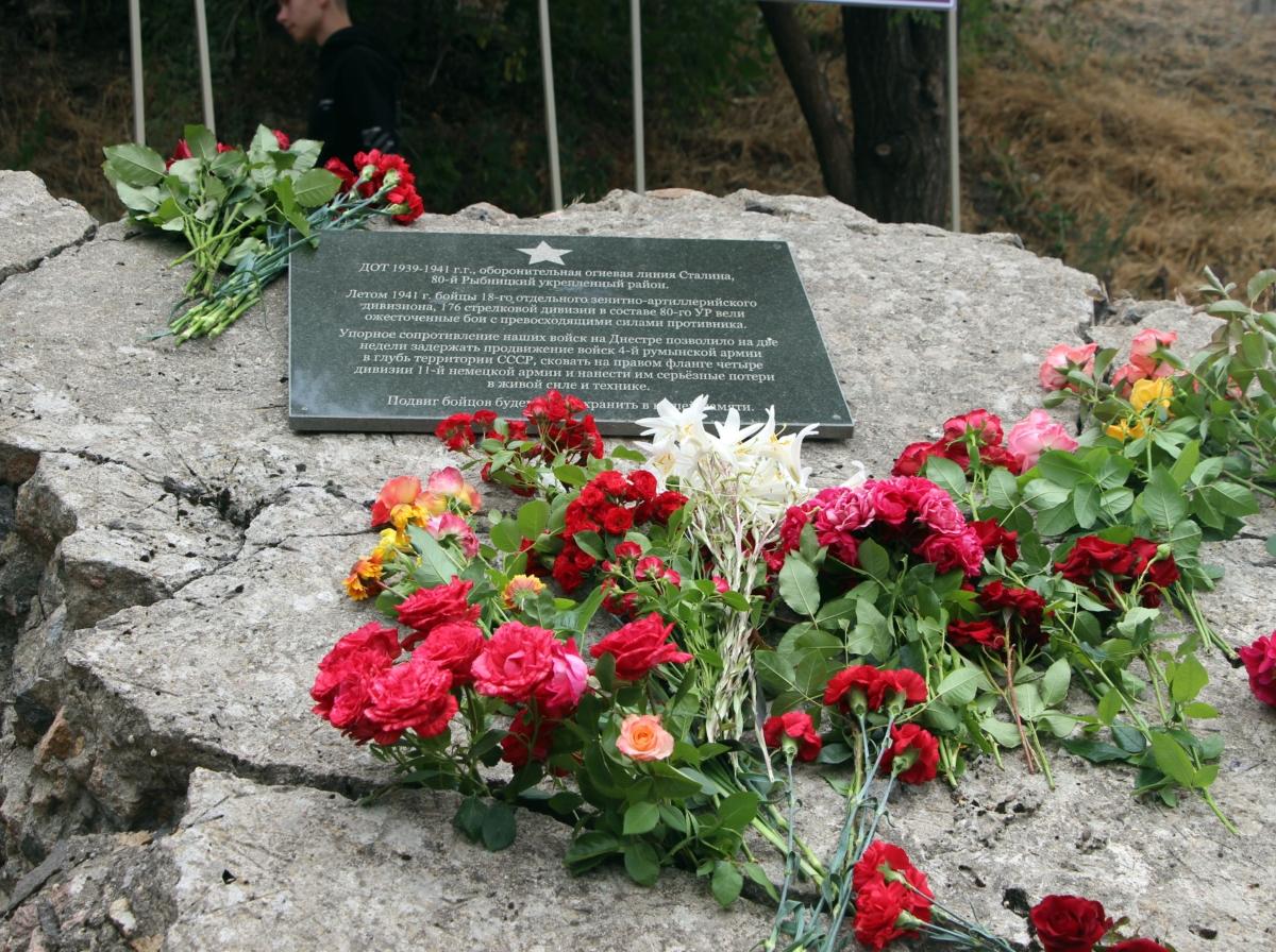 Рыбница, 22 июня. /Новости Приднестровья/. Сегодня к ДОТу, расположенному в селе Выхватинцы Рыбницкого района, возложили живые цветы. Это место – бывшая долговременная огневая точка линии Сталина, которая была разрушена во время Великой Отечественной войны. Спустя время его благоустроили и на каменных обломках установили мемориальную плиту.